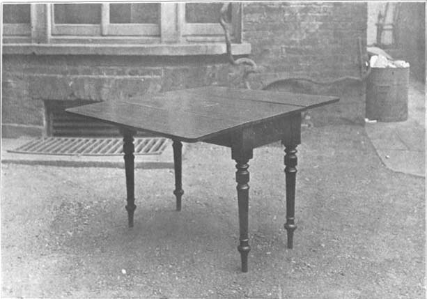 "Slade" Table. (Open) The historic table as used for many years by "Dr." Henry Slade, the slate-writing medium. This table was the principle "exhibit" at his trial in October, 1876. p.323
