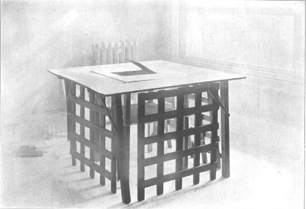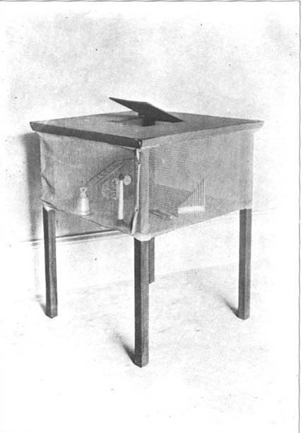 "Pugh" Table. 1. Showing complete structure, with grilles in position, and inner cage-table enclosed in gauze. The flap to inner table is shown raised. p.324