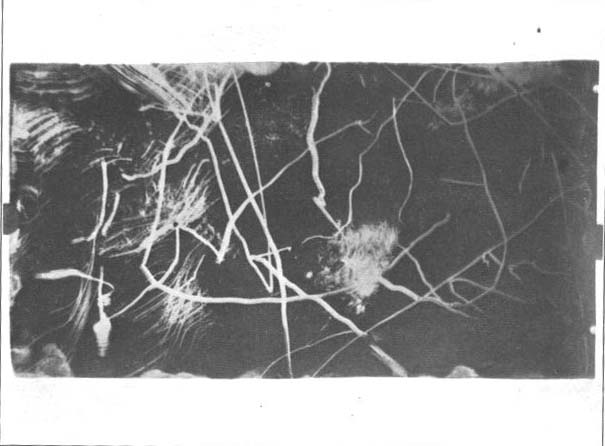 Photograph of smoked tin plate of Pressure Flap Apparatus, showing striated marks, lines, etc., of psychic origin, obtained through the mediumship of Stella C., June 7th, '23. See account of Sitting No. 10. p.332