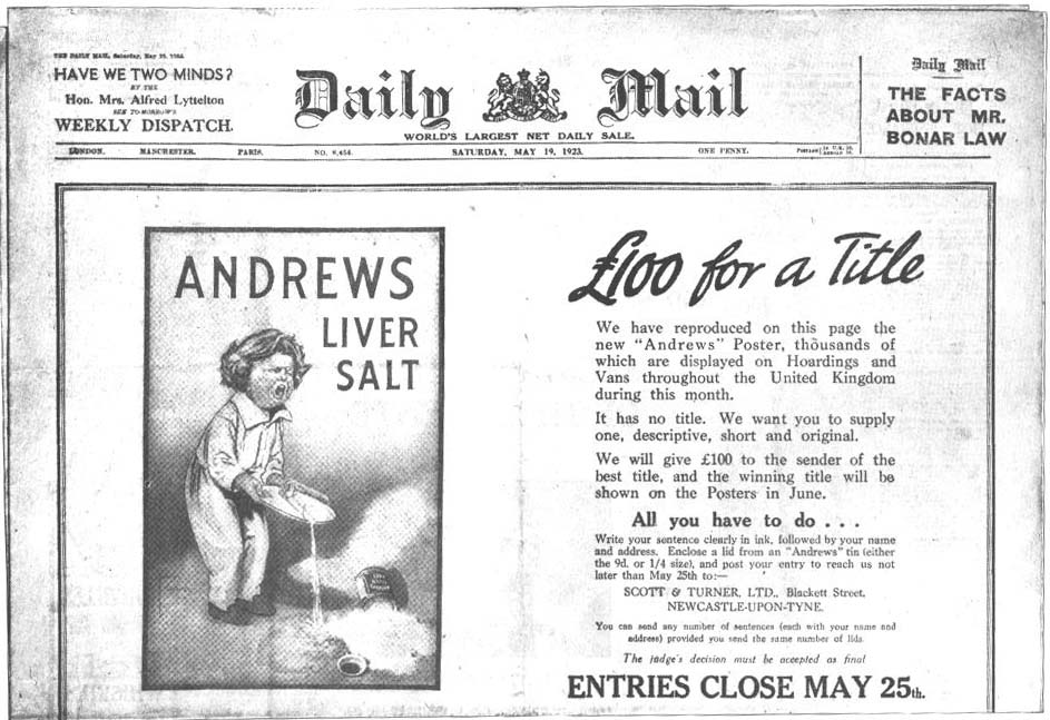 Reproduction of Portion of Front Page of London Daily Mail of Saturday, May 19, 1923.